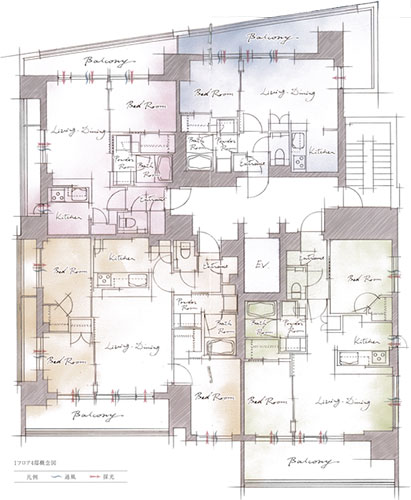 1フロア4邸、全邸2面採光角住戸設計